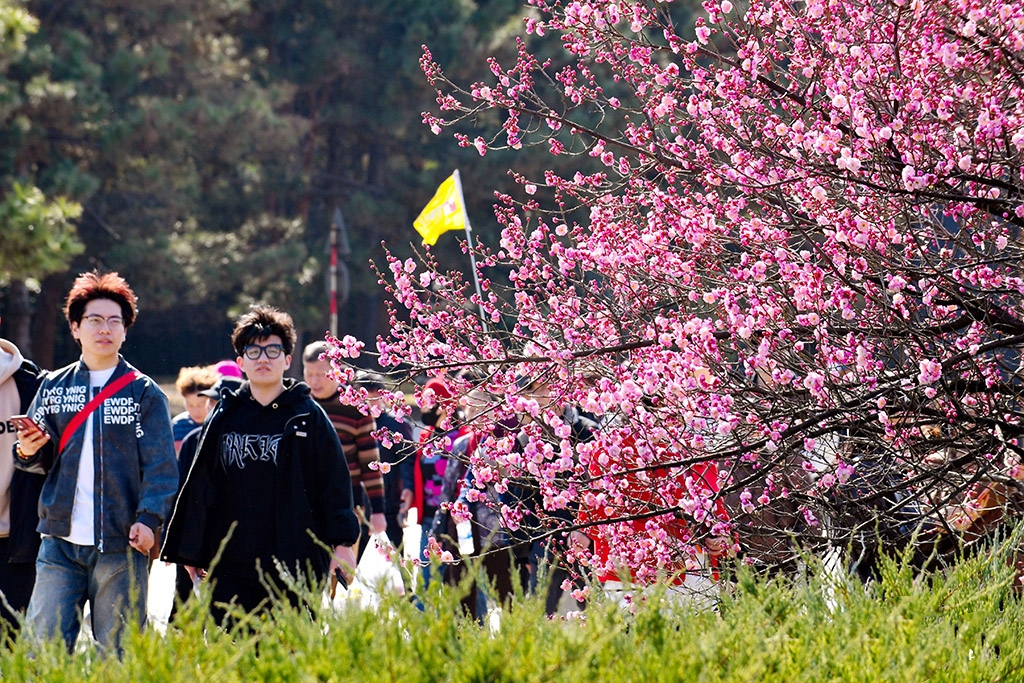 4月5日,陕西省西安市秦始皇帝陵博物院内,梅花盛开,游客纷至沓来。人民网记者 孙挺摄