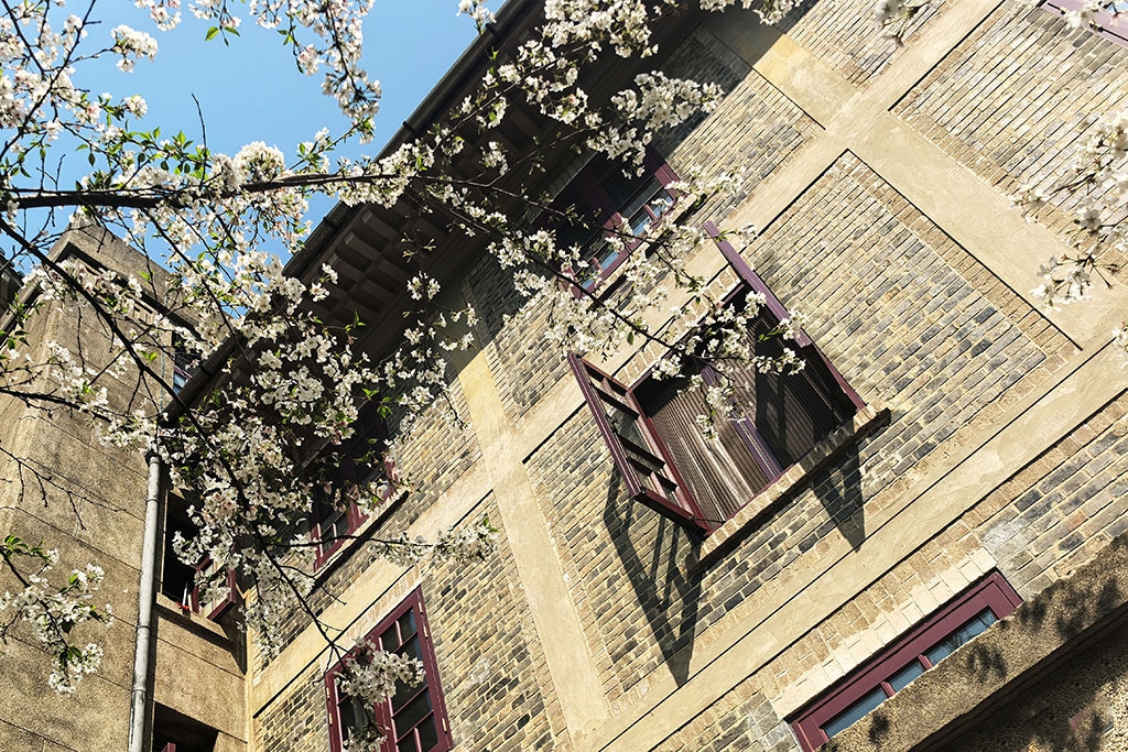 3月31日,游客在天津市和平区大理道的海棠树下拍照留念。人民网记者 崔新耀摄