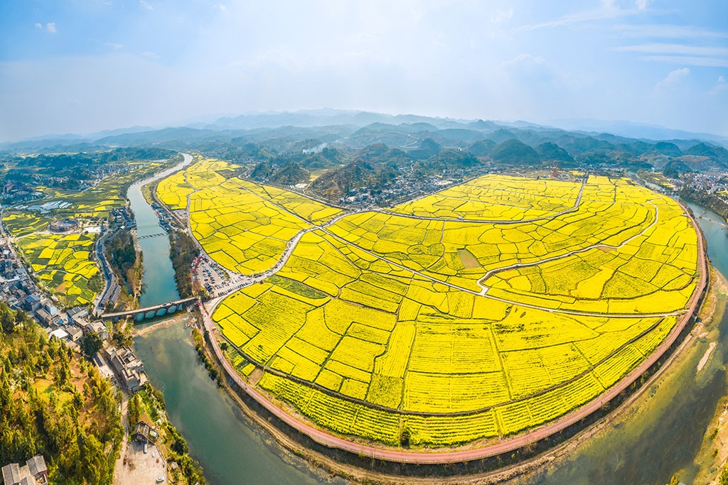 3月24日,贵州省黔南州贵定县“金海雪山”景区内的1500余亩油菜花在明媚的春光里竞相绽放。人民网记者 涂敏摄