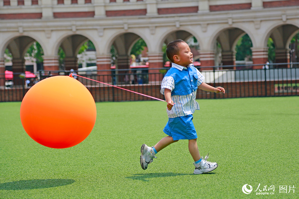 2025年5月29日,一个小朋友在天津市五大道的民园广场玩耍。人民网记者 崔新耀摄