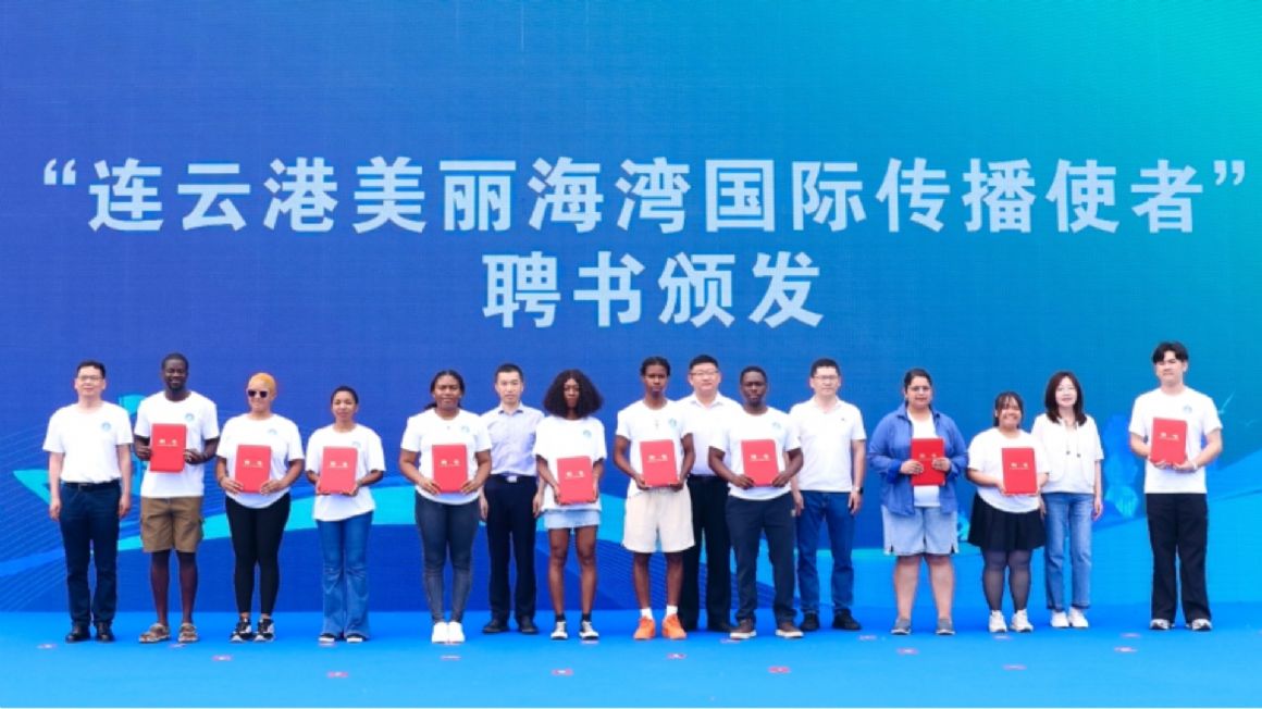 为更好地让江苏海洋故事实现“破圈”传播、走向世界舞台,与会领导向10位留学生代表,颁发“连云港美丽海湾国际传播使者”聘书,并勉励他们带着荣耀,以亲身经历为笔,以真挚情感为墨,向世界描绘美丽海湾的华丽蜕变。