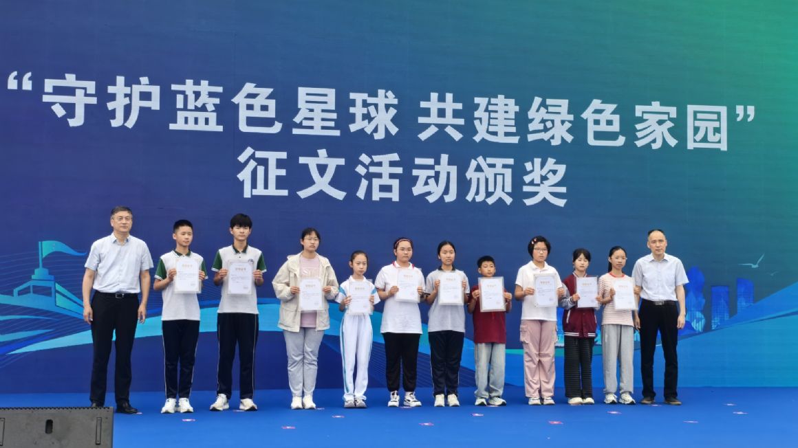 现场为“守护蓝色星球 共建绿色家园”环保主题征文的获奖代表颁发了荣誉证书。