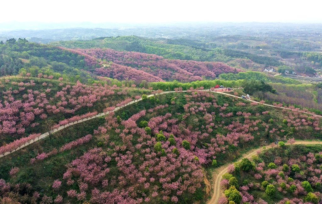 2025年3月29日,河南信阳商城县汪桥镇思乡谷万亩樱花绽放。汪桥镇引进农林公司,种植了以晚樱为主的27个品种170万株苗木,打造了1.1万亩的山林苗圃基地。随着乡村游的兴起,汪桥镇以“农旅融合、以农促旅、以旅富农”为发展思路,发挥资源优势,以花为媒,以节引流,以春造势,将该地打造成3A级旅游景区,不仅为游客们呈现了一场场赏花盛宴,也带来了“花海经济”,为乡村发展注入新活力。人民网记者 王玉兴摄 |