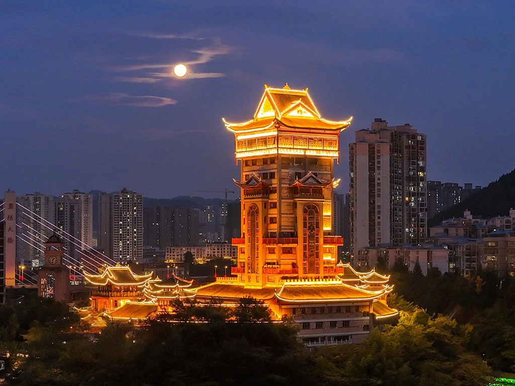 2025年11月5日,在贵州省毕节市七星关区同心城市公园拍摄的“超级月亮”。王洋摄(人民图片网)