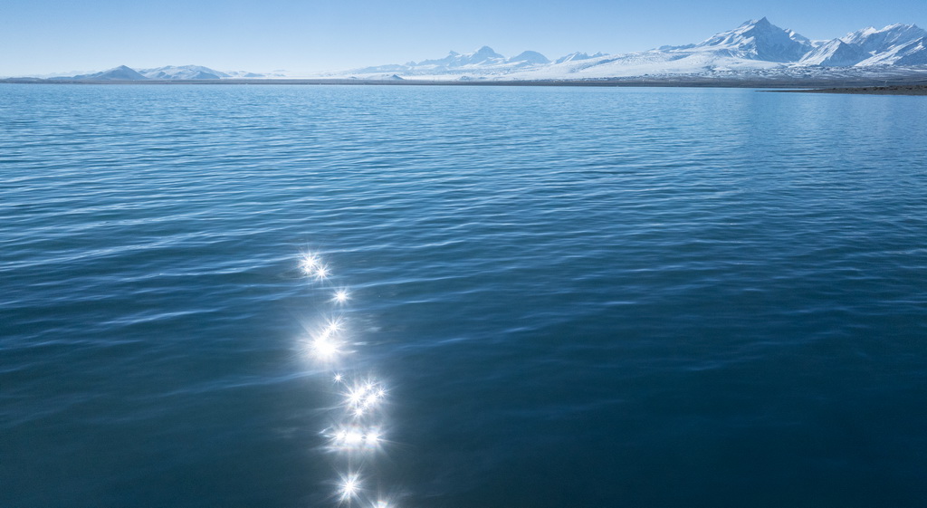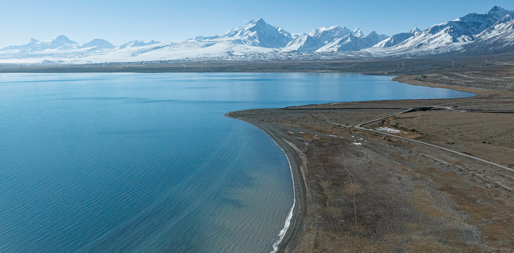 时值冬季,佩枯错的蔚蓝湖水与巍峨雪山相映成趣,构成一幅美丽的自然画卷。新华社记者 丁增尼达 摄
