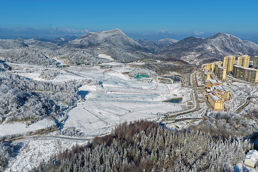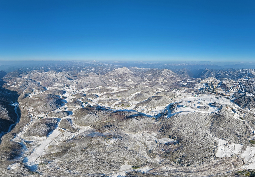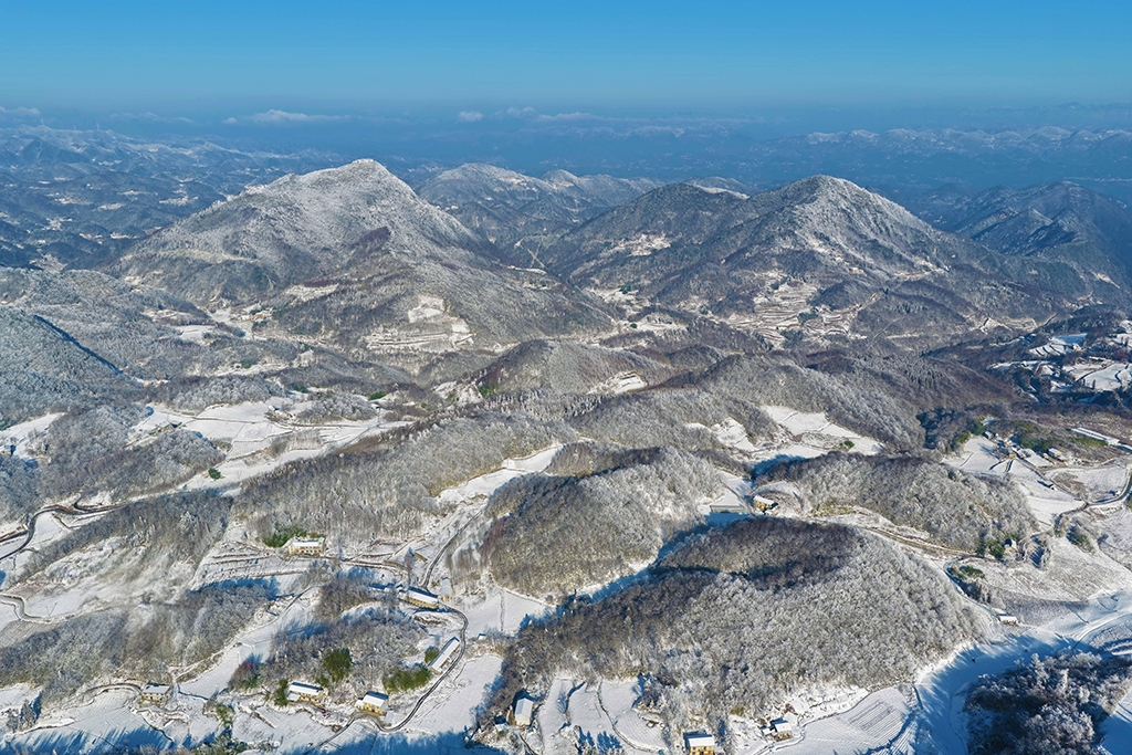 2026年1月6日,湖北恩施土家族苗族自治州巴东县绿葱坡镇,群山连绵,白雪皑皑,起伏的山峦银装素裹,绘就一幅壮美的冰雪画卷。焦国斌摄(人民图片网)