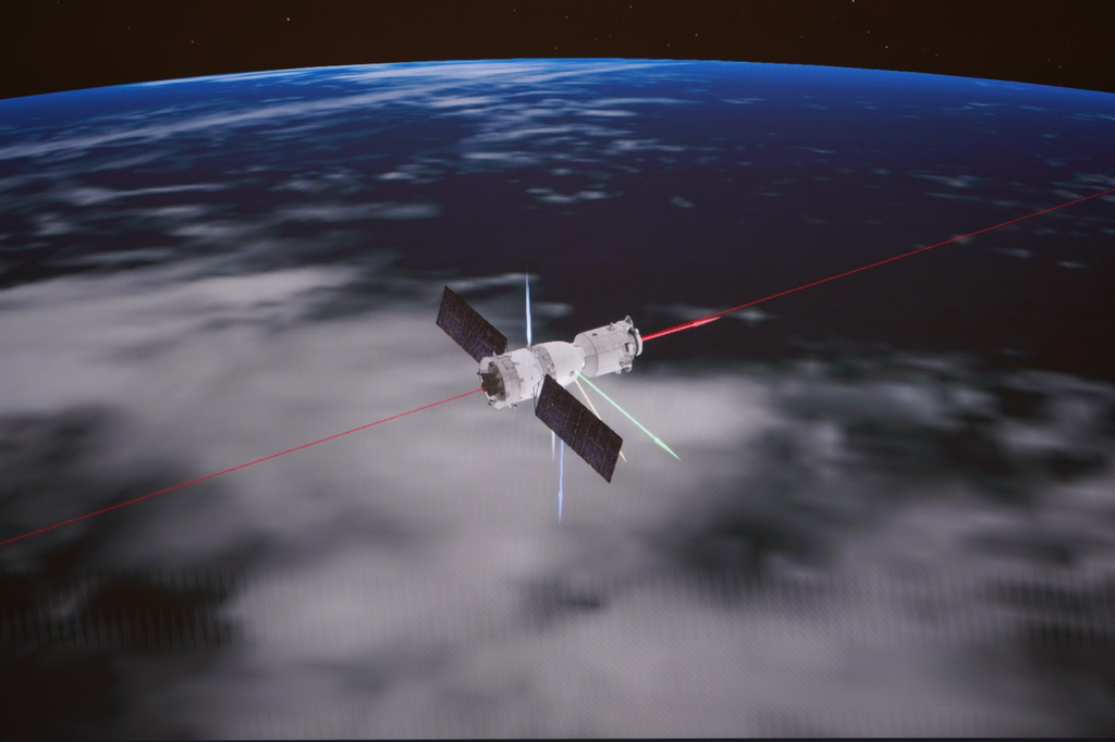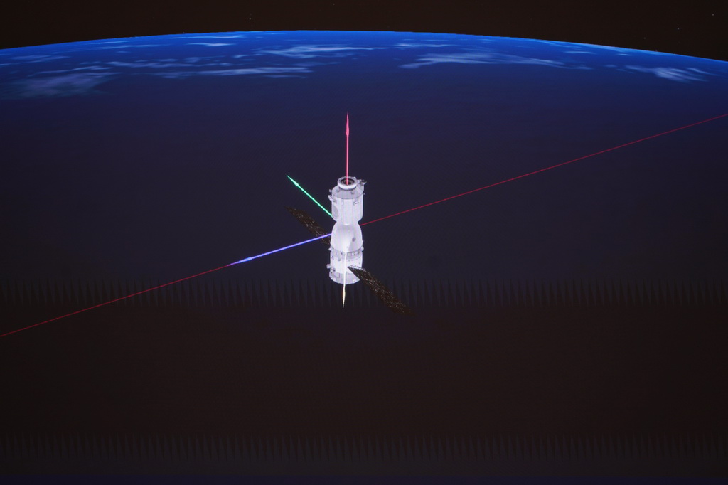 1月19日在北京航天飞行控制中心拍摄的神舟二十号飞船正常轨道飞行姿态的模拟画面。新华社记者 王春涛 摄