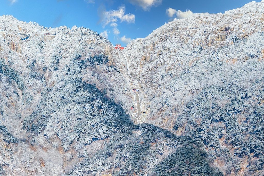 2026年1月20日,山东泰安,雪落岱宗之巅,七千级石阶披上银装,五岳之首换作人间仙境,如诗如画。陈爱国摄(人民图片网)