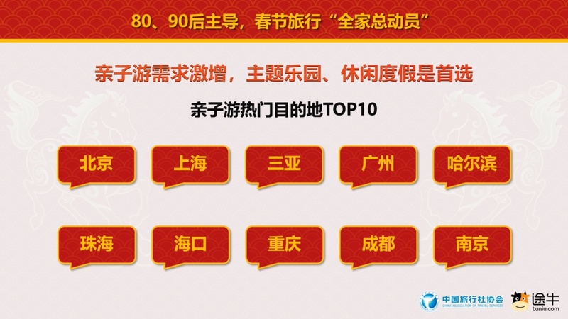 春节假期,亲子游需求激增,北京、上海、三亚、广州、哈尔滨、珠海、海口、重庆、成都、南京等是亲子客群更青睐的目的地。相关目的地的主题乐园、动植物园、文博古建等行程以及休闲度假模式等成为亲子游的热门之选。