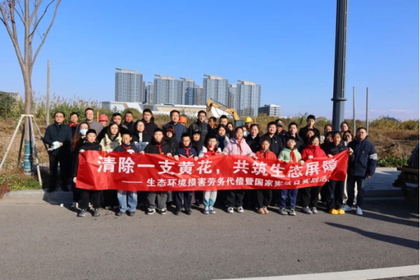 上午,行动正式开始。挖掘机将一株株“黄花”连根翻出,承担代偿义务的企业员工仔细捡拾、归集。统一装车后,这些入侵植物被运往垃圾焚烧厂进行无害化处理。“以前总觉得生态环境损害赔偿离我们很远,现在亲身参与清理,才真切感受到每一个环保行动的意义。”一位参与劳务代偿的企业员工说。这种参与式、体验式的责任履行方式,让环保从“纸上条款”变为“手中行动”,实现惩罚、教育、修复多重效果。