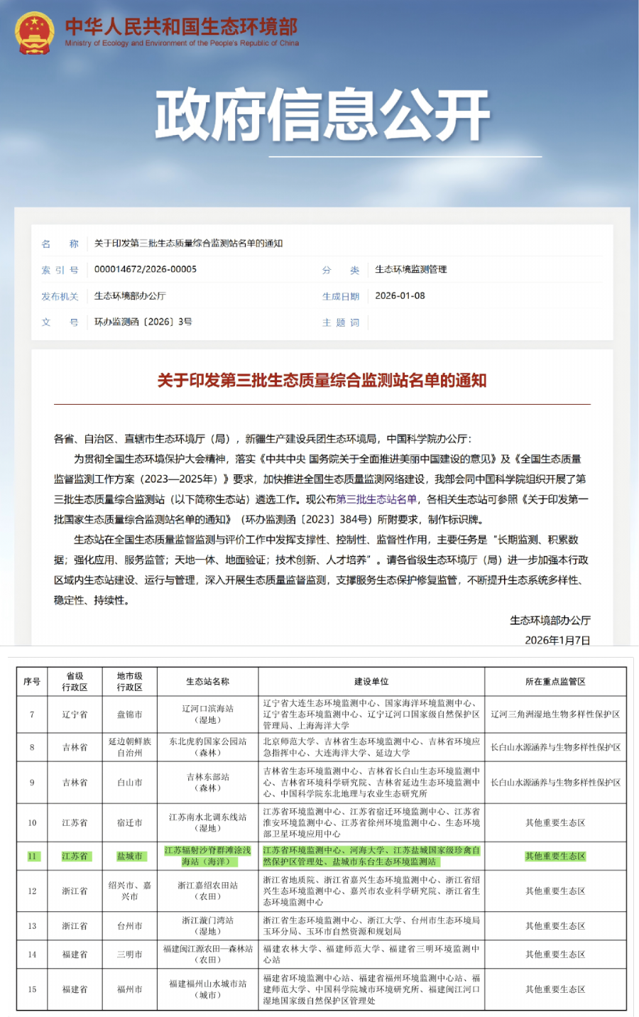 ——江苏辐射沙脊群滩涂浅海站(海洋)入选第三批生态质量综合监测站