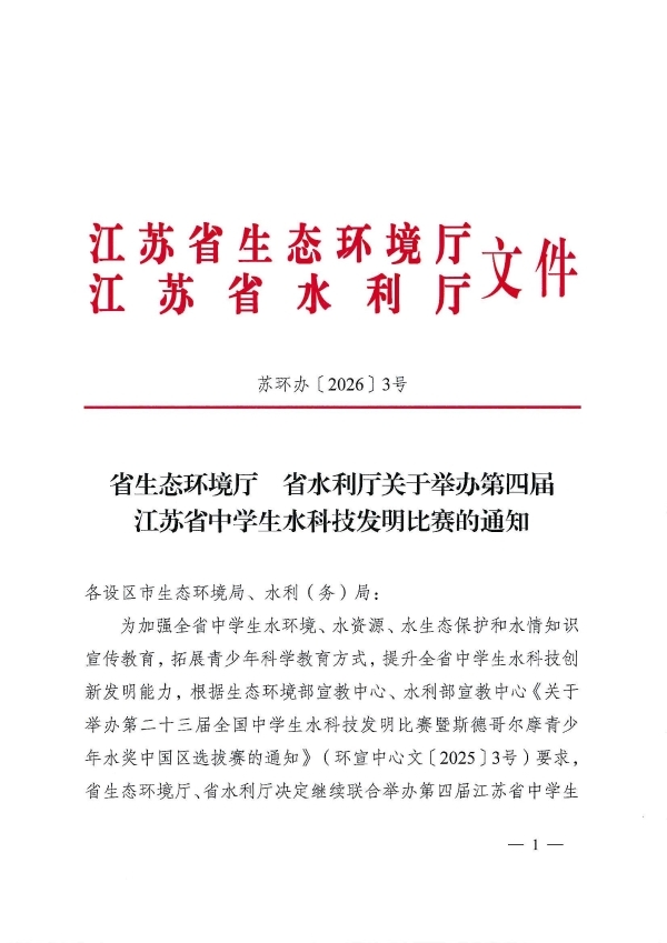 第四届江苏省中学生水科技发明比赛的通知
