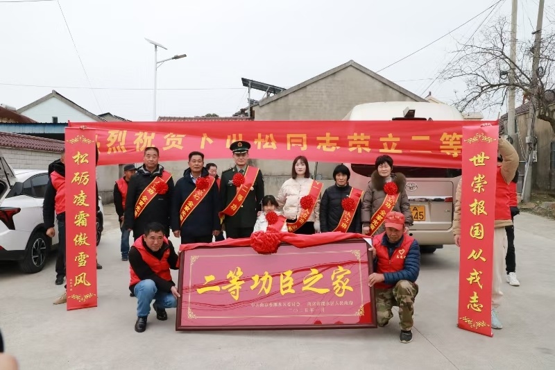 溧水区军地联合送喜小组来到二等功臣卞世松家送喜报。彭芳摄