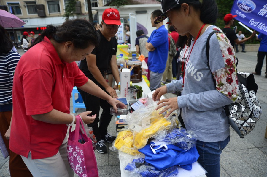 主办方代表向社区贫困家庭和保洁员捐赠服装50套
