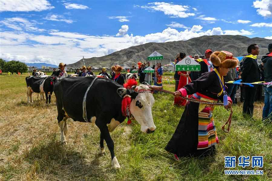9月6日,在2019·西藏“中国农民丰收节”暨扎囊氆氇文化节上,山南“最美雅砻牛”评选活动在进行。 当日,2019·西藏“中国农民丰收节”暨扎囊氆氇文化节在西藏山南市扎囊县举行,节日将持续四天。 新华社记者 张汝锋 摄