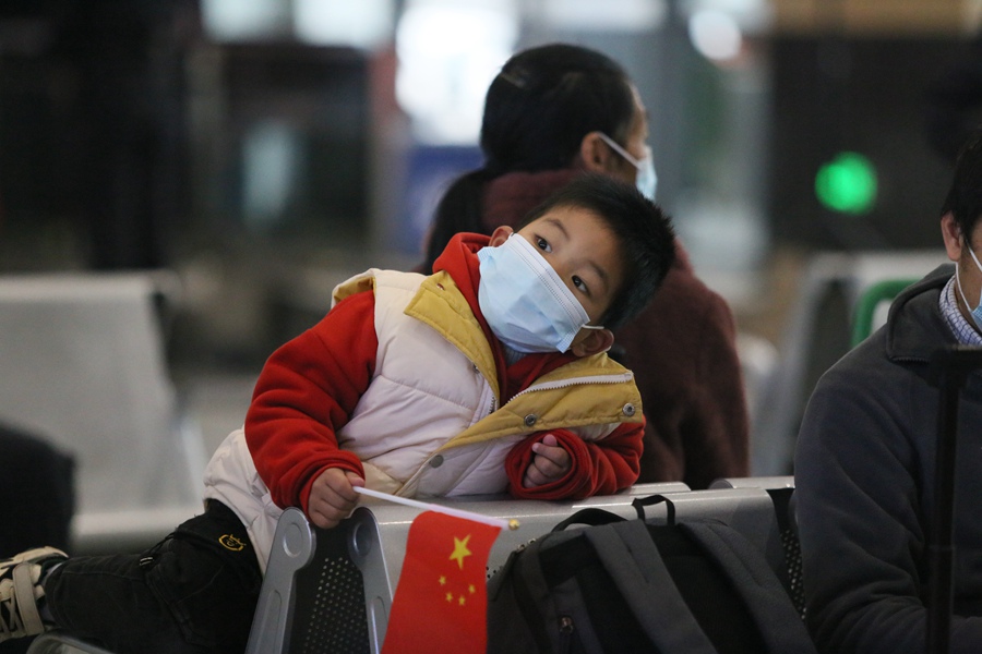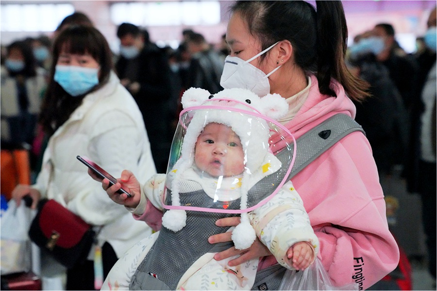 泉州站中戴“面罩”的萌娃。陈珊娜摄