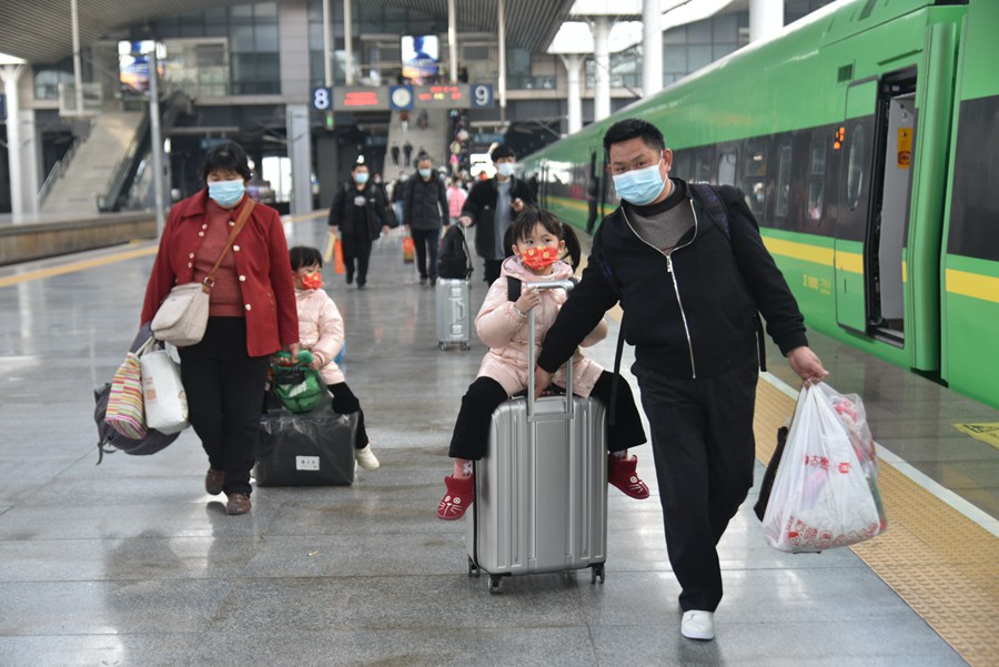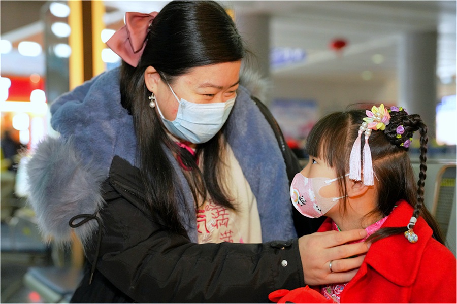 泉州站中,小女孩打扮漂亮地向家出发。陈珊娜摄