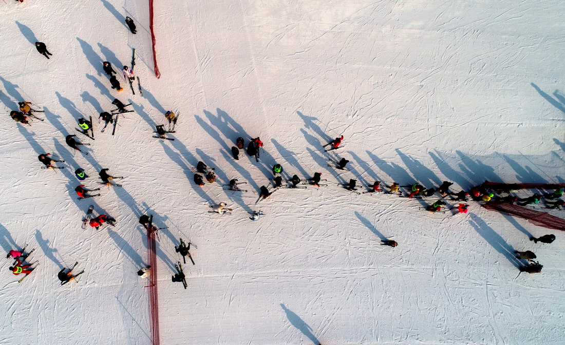 1月2日,游客在河北省石家庄市西部长青冰雪小镇滑雪游玩(无人机照片)。 新华社发(梁子栋摄)