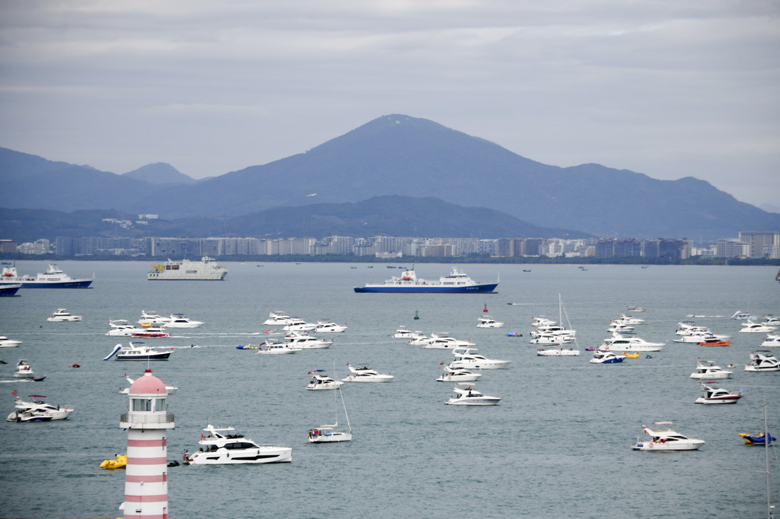 1月27日,人们在海南省三亚市乘坐游艇出海游玩。新华社发(沙晓峰 摄)