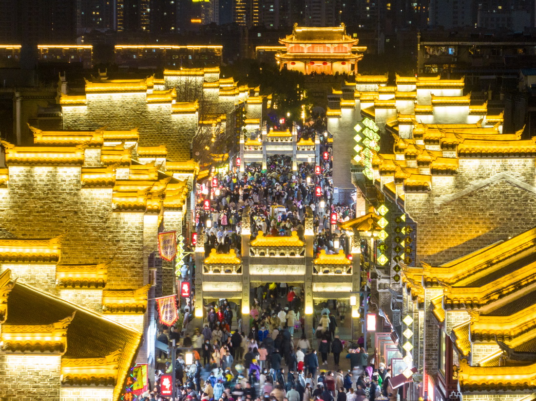 1月27日,游客在湖北襄阳古城北街游览。新华社发(杨东 摄)