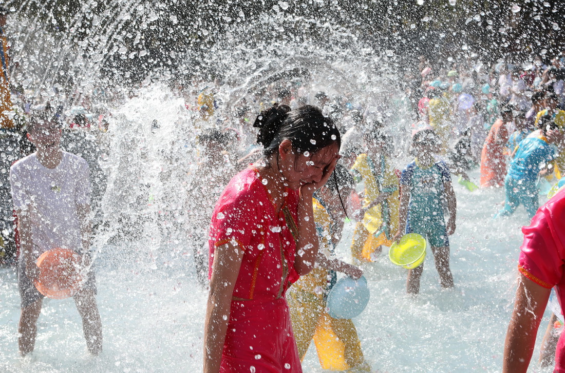 1月25日,游客在西双版纳傣族园景区参加“天天泼水节”活动。新华社发(李云生 摄)