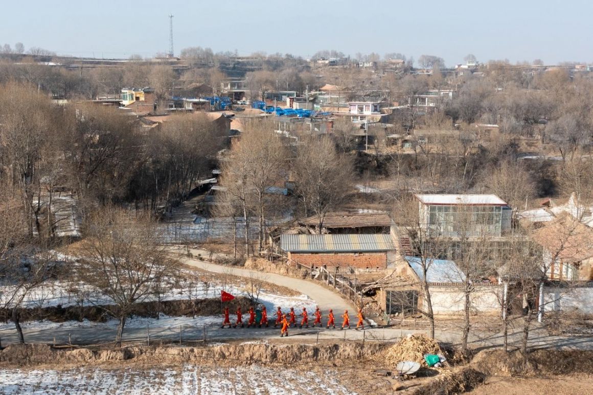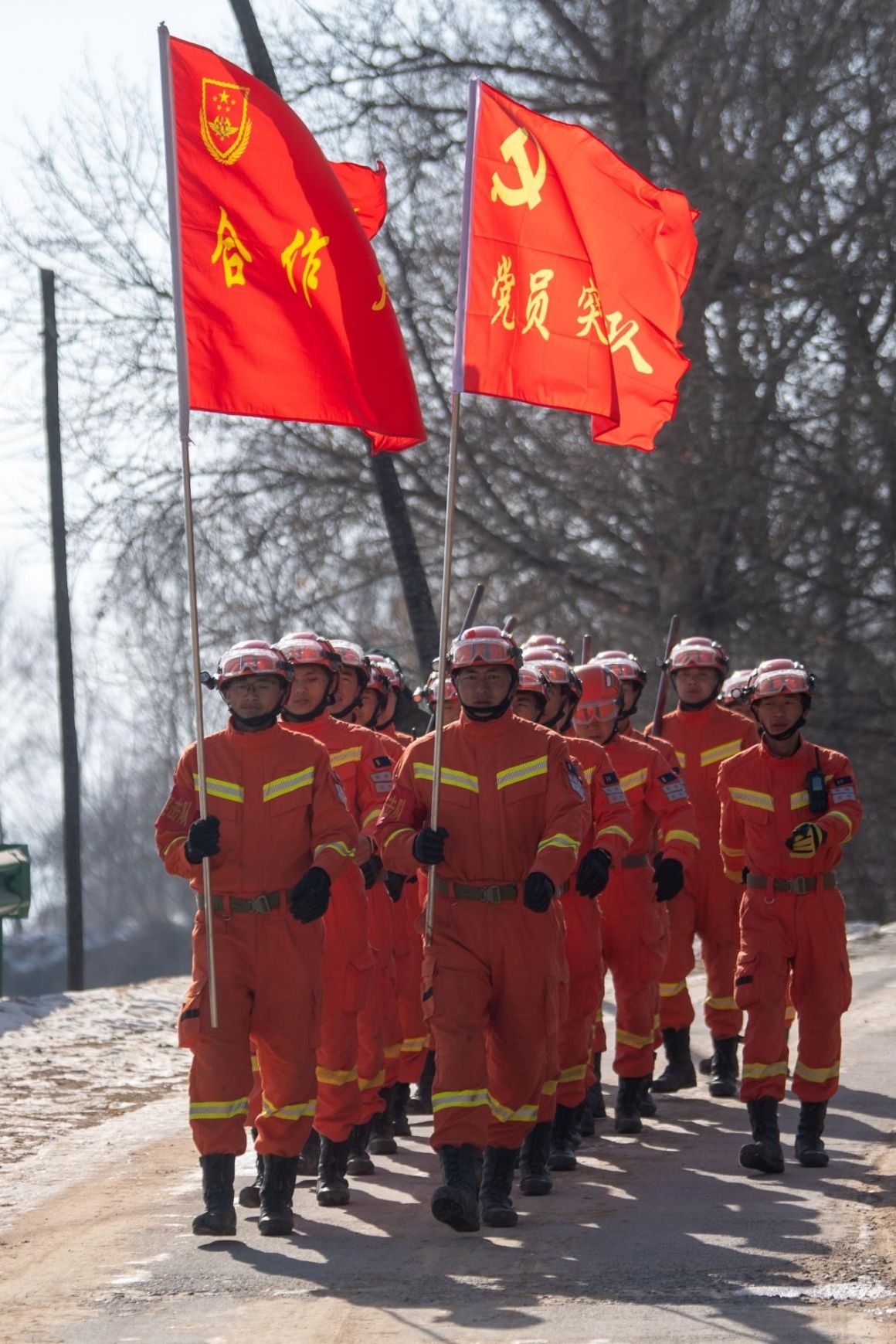 12月21日,在积石山县石塬镇石塬村,甘肃省森林消防总队陇南支队合作大队整装出发。