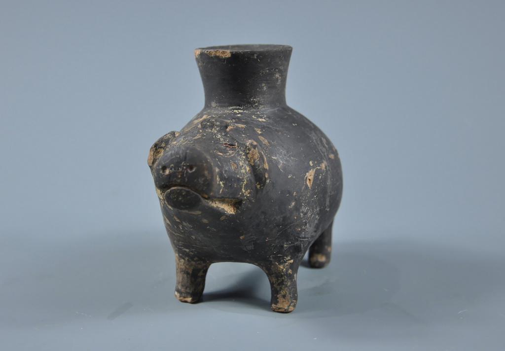 安徽郎溪磨盘山遗址出土的崧泽文化陶猪尊。新华社发(全国十大考古新发现活动办公室供图)