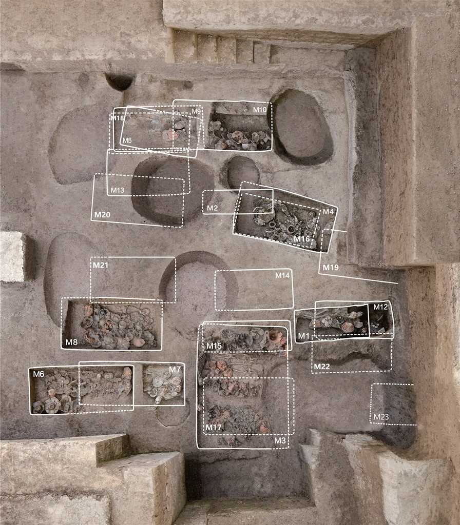 河南郑州商都书院街墓地发掘现场(2023年5月13日摄,无人机照片)。新华社记者 李贺 摄