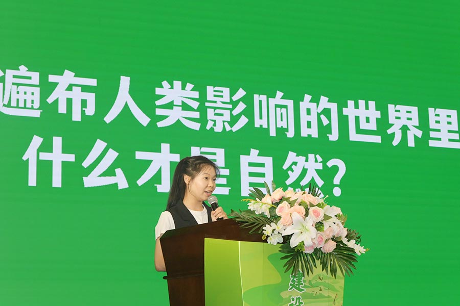 来自南京林业大学、玄武区人民法院和玄武区守望自然科普中心的志愿者分别作了《生态中国 林基坚实》、《绿色司法保障环境权益 促进人与自然和谐共生》、《重启自然之钥:以自然教育启迪未来生态守护者》等环保主题分享,展现了生态中国建设的不懈探索、持续接力和薪火传承。来自南林水杉艺术团的同学们通过《八段景》民乐演奏、《浮光?朱雀》现代舞、《到来》集体朗诵等呈现了人与自然和谐共处的诗意画面、传递了绿色发展理念。