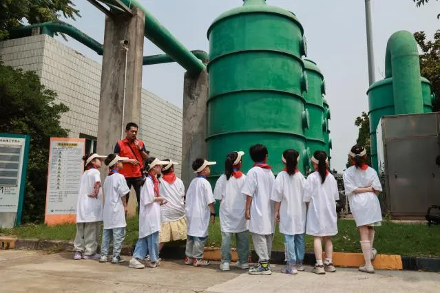 常州市新北区圩塘中心小学的小使者们正在聆听污水处理厂的处理过程