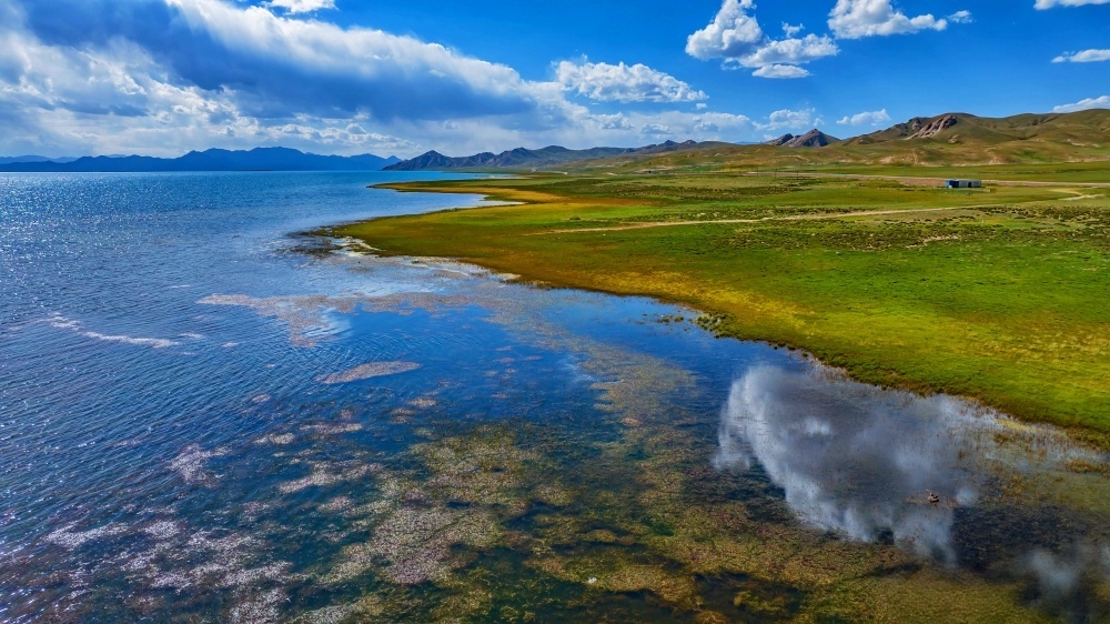 位于青海省果洛藏族自治州玛多县的冬格措纳湖,初秋时节仿佛是一幅流动的绝美画卷。这座藏语意为“黑海”的湖泊,此刻褪去夏日的喧闹,4300米海拔的湖面澄澈如镜。因降水减少、矿物质浓缩,湖水晕染出层次分明的色彩——近岸是透亮的浅蓝,映着岸边草甸的碎影;向湖心渐变为深邃的钴蓝,微风拂过,涟漪似散落的碎钻,“蓝宝石”般的湖景与黄绿交织的高寒草甸、覆着薄雪“镶边”的阿尼玛卿支脉相映,勾勒出独属于高原的静谧与壮阔。