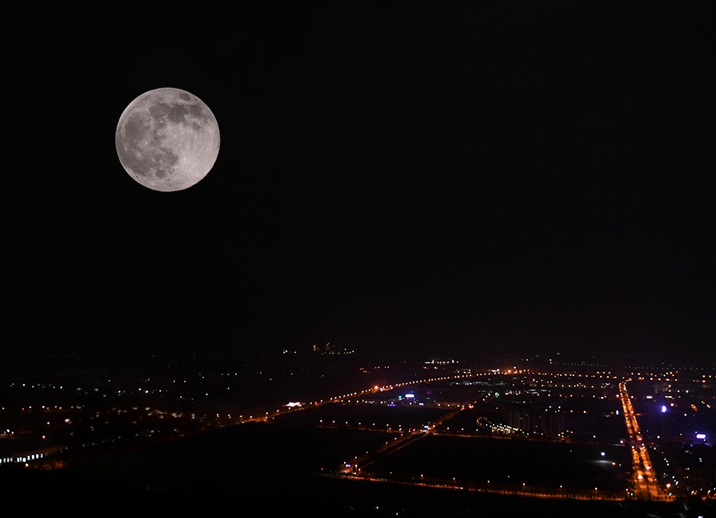 2025年11月5日,在安徽省巢湖市上空拍摄的“超级月亮”。马丰成摄(人民图片网)