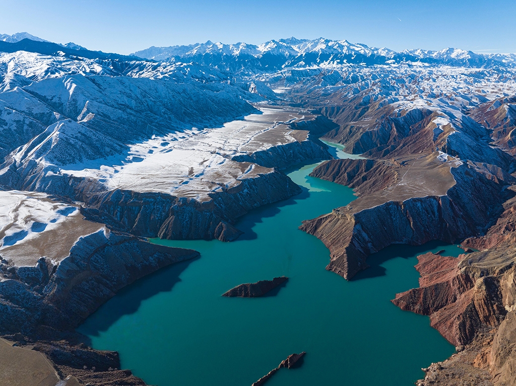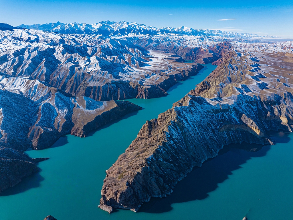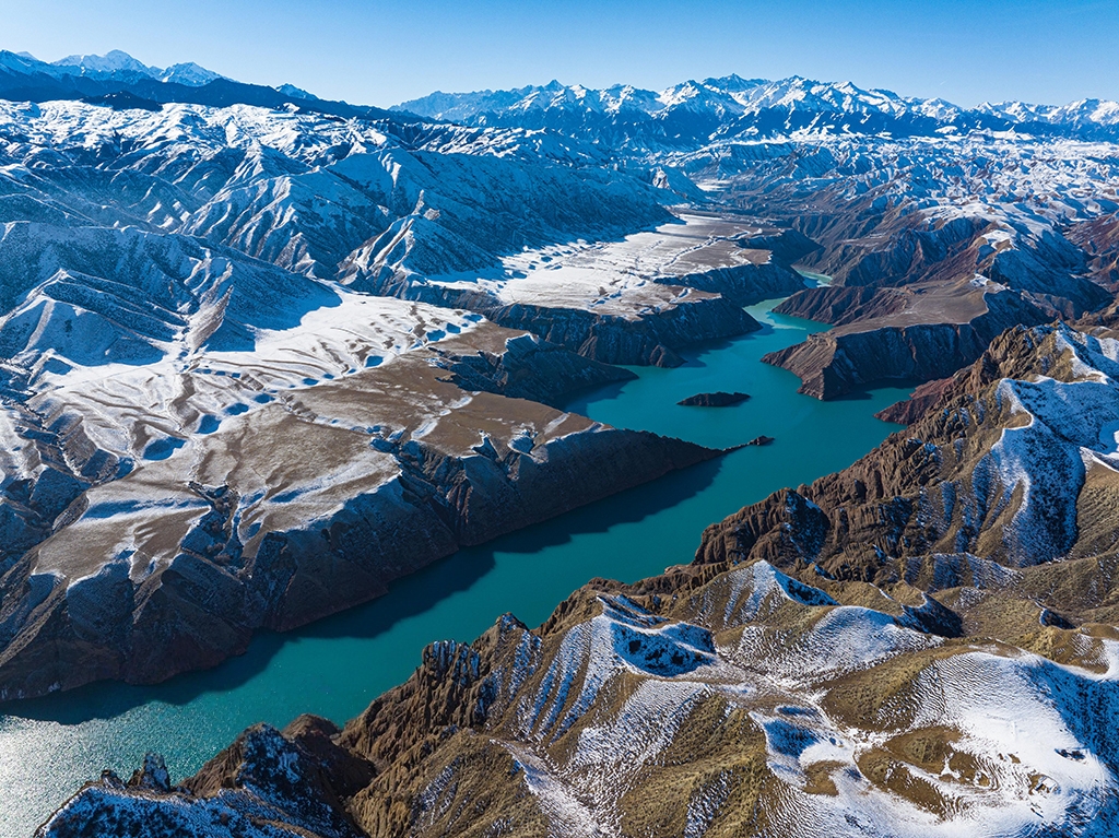 初冬时节,新疆昌吉回族自治州玛纳斯县肯斯瓦特景区风光壮丽。
