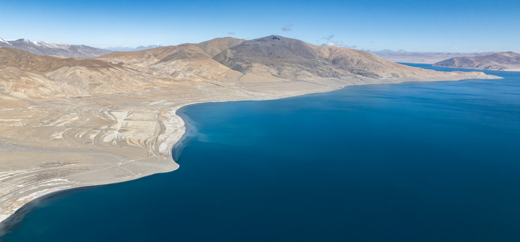时值冬季,佩枯错的蔚蓝湖水与巍峨雪山相映成趣,构成一幅美丽的自然画卷。新华社记者 丁增尼达 摄