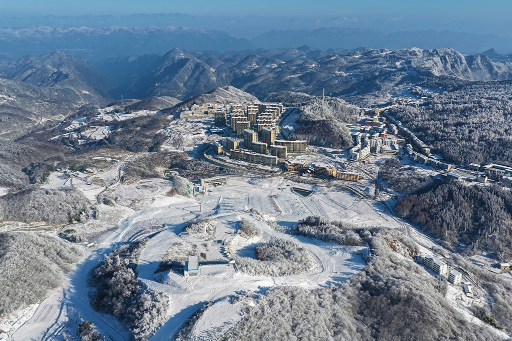 2026年1月6日,湖北恩施土家族苗族自治州巴东县绿葱坡镇,群山连绵,白雪皑皑,起伏的山峦银装素裹,绘就一幅壮美的冰雪画卷。焦国斌摄(人民图片网)