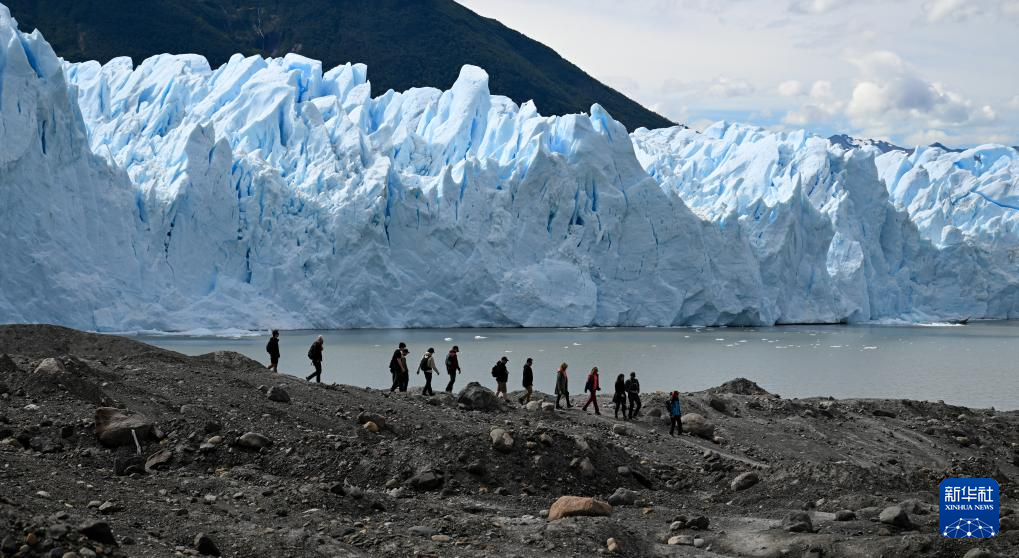 1月3日,游客在阿根廷圣克鲁斯省冰川国家公园内的莫雷诺冰川附近行走【1】。
