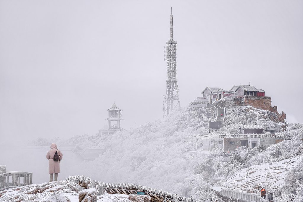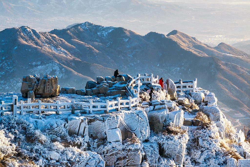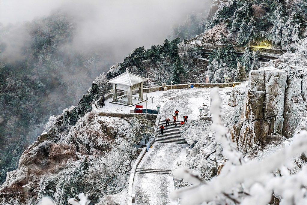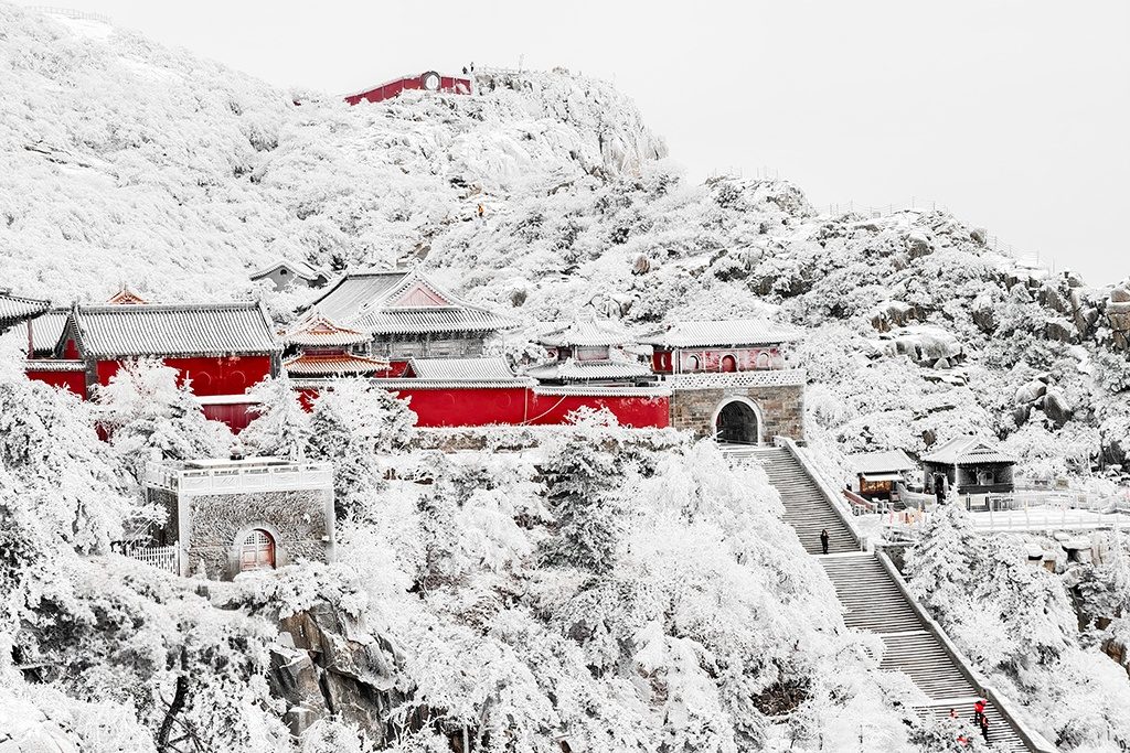 2026年1月20日,山东泰安,雪落岱宗之巅,七千级石阶披上银装,五岳之首换作人间仙境,如诗如画。陈爱国摄(人民图片网)