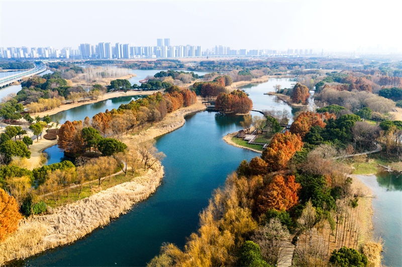 1月28日,苏州虎丘湿地公园树木色彩斑斓,风景宛如油画令人陶醉。孔繁立 摄 视觉江苏网供图