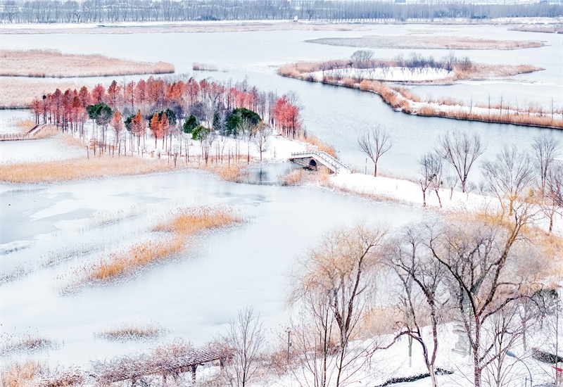1月20日,雪后的东海县西双湖国家湿地公园银装素裹,美景如画。邵光明 摄 视觉江苏网供图