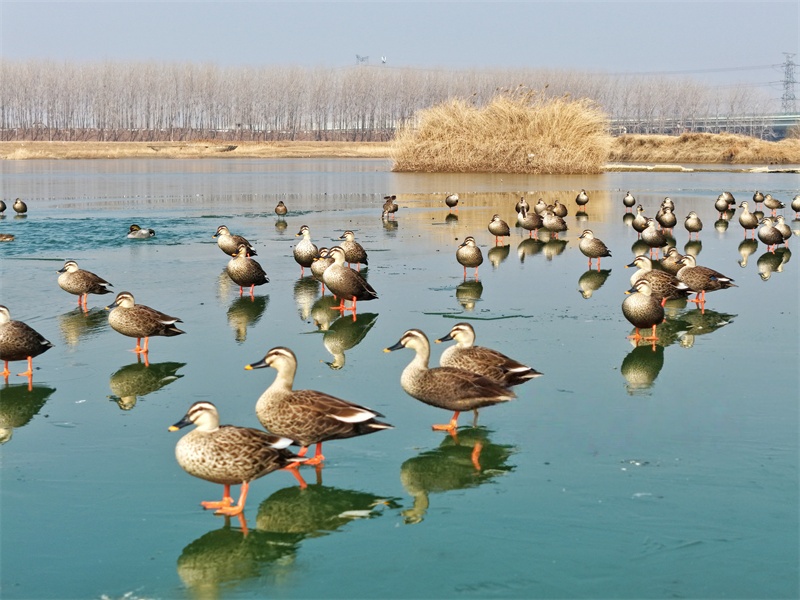 1月23日,沭阳县,成群的国家“三有”保护动物斑嘴鸭在新沂河湿地栖息,为冬日湿地增添生机。丁华明 摄 视觉江苏网供图
