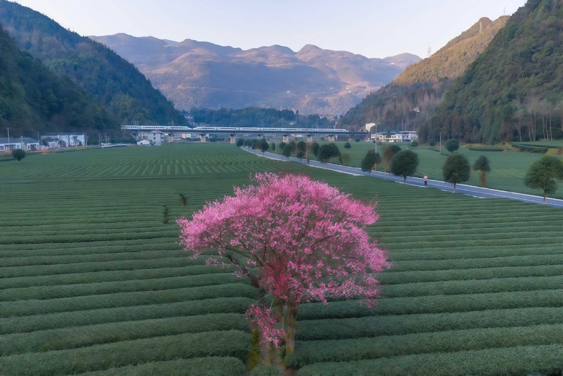 2026年2月11日,湖北恩施白果乡长鹰坝村,茶园中梅花绽放,为早春增添了一抹绚烂色彩。杜维摄(人民图片网)
