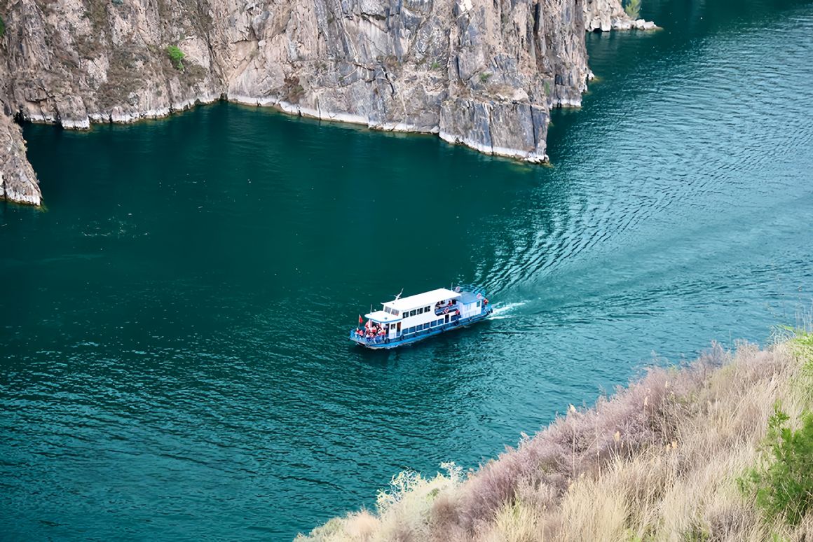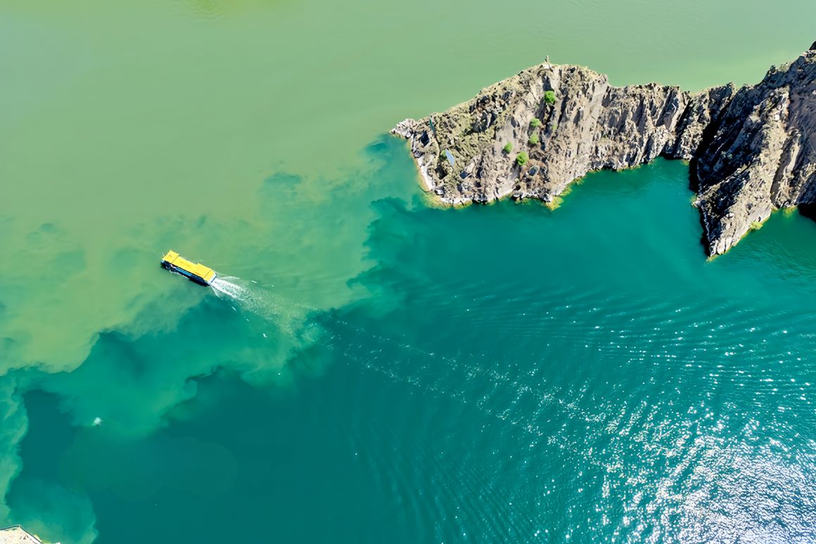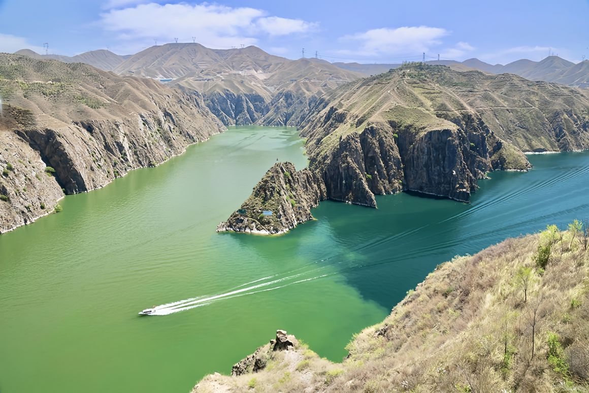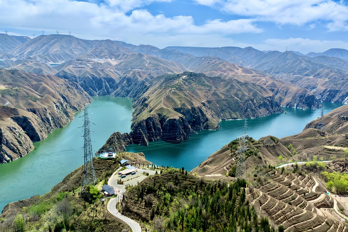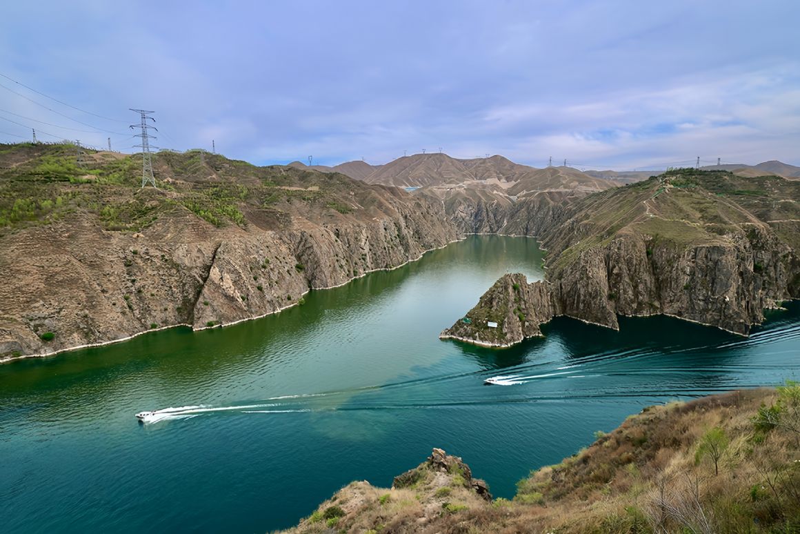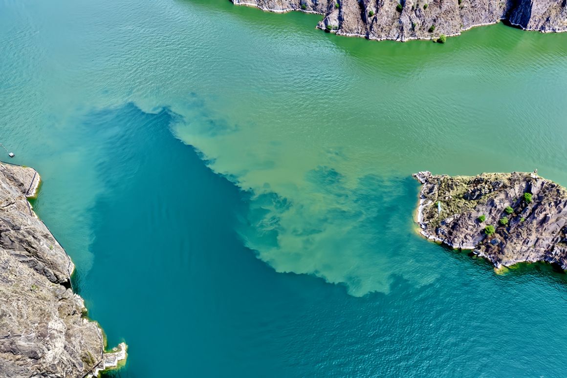 2026年4月23日,甘肃省临夏回族自治州永靖县刘家峡,黄河与洮河交汇相融,一清一浊界限分明,形成独具特色的高原峡谷自然景观,吸引各地游客前来观光。苏容摄(人民图片网)