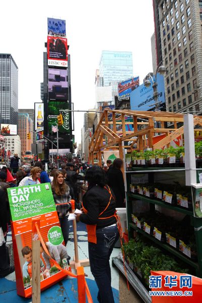 4月22日,美国纽约时报广场举行环保与绿色生活的展览,纪念世界地球日。(吴凯翔摄)