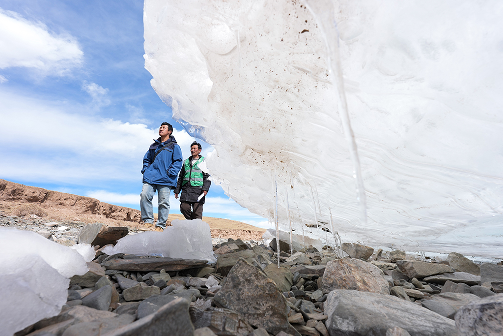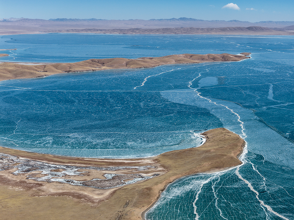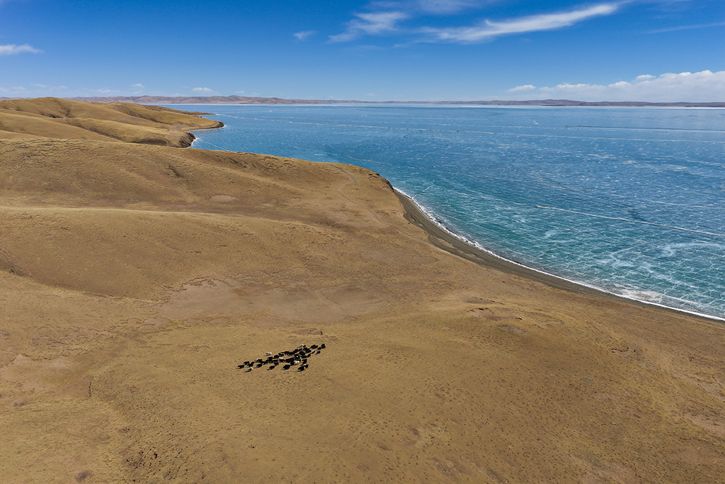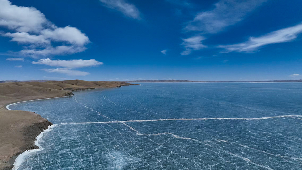 初春时节,黄河源地区冰雪渐融,湖冰与广袤草原相映成景,尽显辽阔壮美。