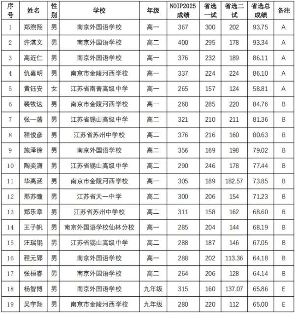 名单公示!17名中学生入选信息学奥赛江苏省队,来自这些学校