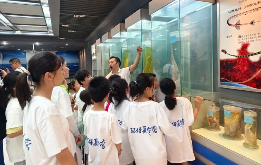 江苏海洋大学海洋馆内,在李士虎教授的精彩讲解下,海洋馆陈列的上千件海洋生物标本、五彩斑斓的矿石、沉睡亿年的化石无不在诉说着时代的变迁和生命的珍贵,而那三米长的中华鲟标本引发孩子们对生命演化的惊叹;一块见证了地球的诞生与变迁的40.1亿年前的古老岩石,更让孩子们深刻感受到时间的浩渺与生命的奇迹。参观过程中,李教授还对孩子们感兴趣的问题进行解答。此次研学之旅,不仅是一场视觉与知识的盛宴,更是一次心灵的触动。孩子们在惊叹于海洋的壮丽与神秘的同时,也深刻意识到海洋与人类的命运紧密相连。