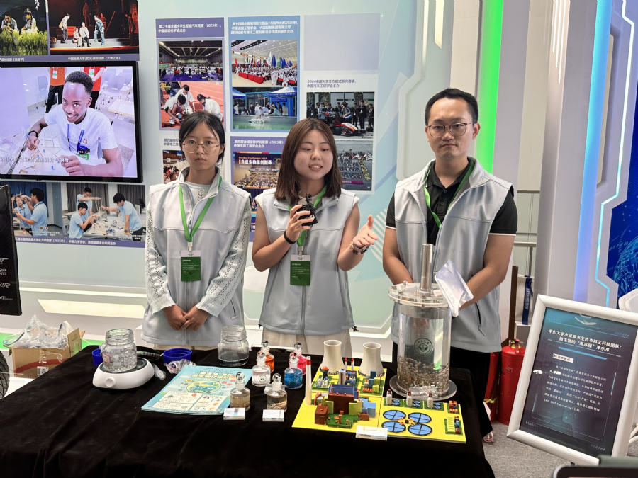 同济大学的展项,核心是展示污水污泥处理与处置的新型装备与前沿技术。中山大学的展项,核心则聚焦“抗生素废水难题”这一全球环境挑战,介绍学校原创的微生物净水技术。