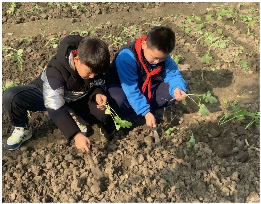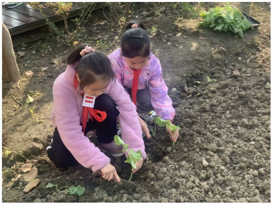 “开心农场”劳动实践活动是我校美境行动的重要起点,也是生态环境教育的基石。作为美境行动的核心实践场景,学生们在生态园中,从育苗到收获,全程参与农作物的生长过程——翻土时,感受土地的厚重;播种时,埋下绿色的希望;浇水施肥时,体会生命成长的不易。在美境行动倡导的“亲自然、践环保”理念指引下,学生们不仅掌握了劳动技能,更切身感受到自然生态的珍贵与脆弱,从而萌发守护环境的责任感。劳动教育让学生们懂得,美境行动不是空洞的倡议,而是从每一株幼苗、每一寸土地开始的实际行动,是用双手为家园编织绿色的过程。