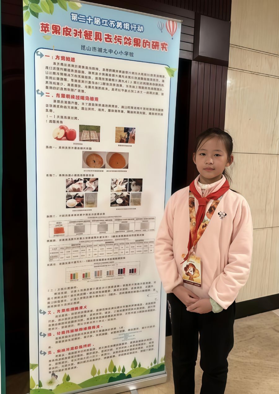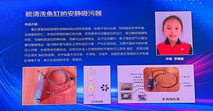 围绕美境行动“从生活出发,护生态家园”的核心,学生们的科创探索从未停歇:看到校园鱼缸清洁时噪音大、易惊扰鱼虾,便以美境行动“关爱水生环境”为导向,设计《能清洗鱼缸的安静吸污器》,在保障清洁效果的同时减少对水生环境的干扰;发现家庭餐具清洁常依赖化学洗剂,紧扣美境行动“天然环保”主题,开展《苹果皮对餐具去污效果的研究》,尝试用天然食材残渣替代化学产品;考虑到蔬菜保鲜常需化学药剂,遵循美境行动“绿色保鲜”原则,启动《苹果皮榨汁液对部分叶类蔬菜保鲜效果的研究》,探索绿色保鲜新路径;针对禽蛋储存易变质的问题,又以美境行动“减少资源浪费”为目标,开展《食用油对部分禽蛋保鲜效果的研究》,寻找低成本、无污染的保鲜方法。此外,不少学生还结合美境行动要求,撰写“绿色家园”主题探究活动方案,从社区垃圾分类优化到家庭节能妙招,将科创思路延伸到更广阔的环保场景中。这些课题的研究,不仅锻炼了学生的科学思维和实践能力,更让他们在践行美境行动的过程中,深刻意识到科技创新对环境保护的重要性——每一个小发明、每一次小研究,都是美境行动中守护绿色家园的有力行动。