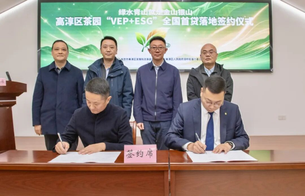 12月4日,在多方见证下,高淳农村商业银行与南京雅润茶业有限公司(以下简称雅润茶业)签署了《茶园生态资产价值融资协议》,雅润茶业成功获得500万元贷款,执行利率较基准利率下浮50个基点。这标志着全国首个“VEP+ESG”核算及融合评价体系正式落地。